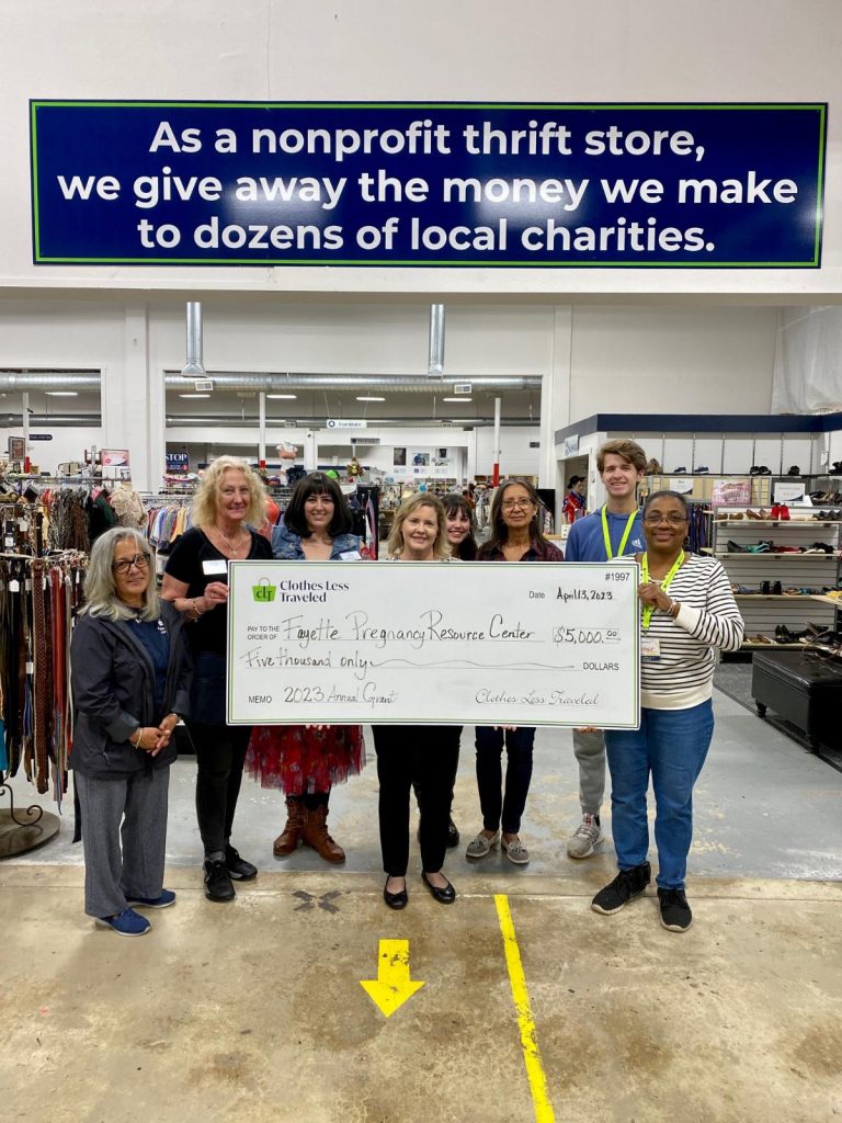 In April, we received a generous grant award from Clothes Less Traveled. Their continued support of our Center is much appreciated. They provide a great deal of support to nonprofits in our community. Pictured are staff and volunteers from this amazing organization.