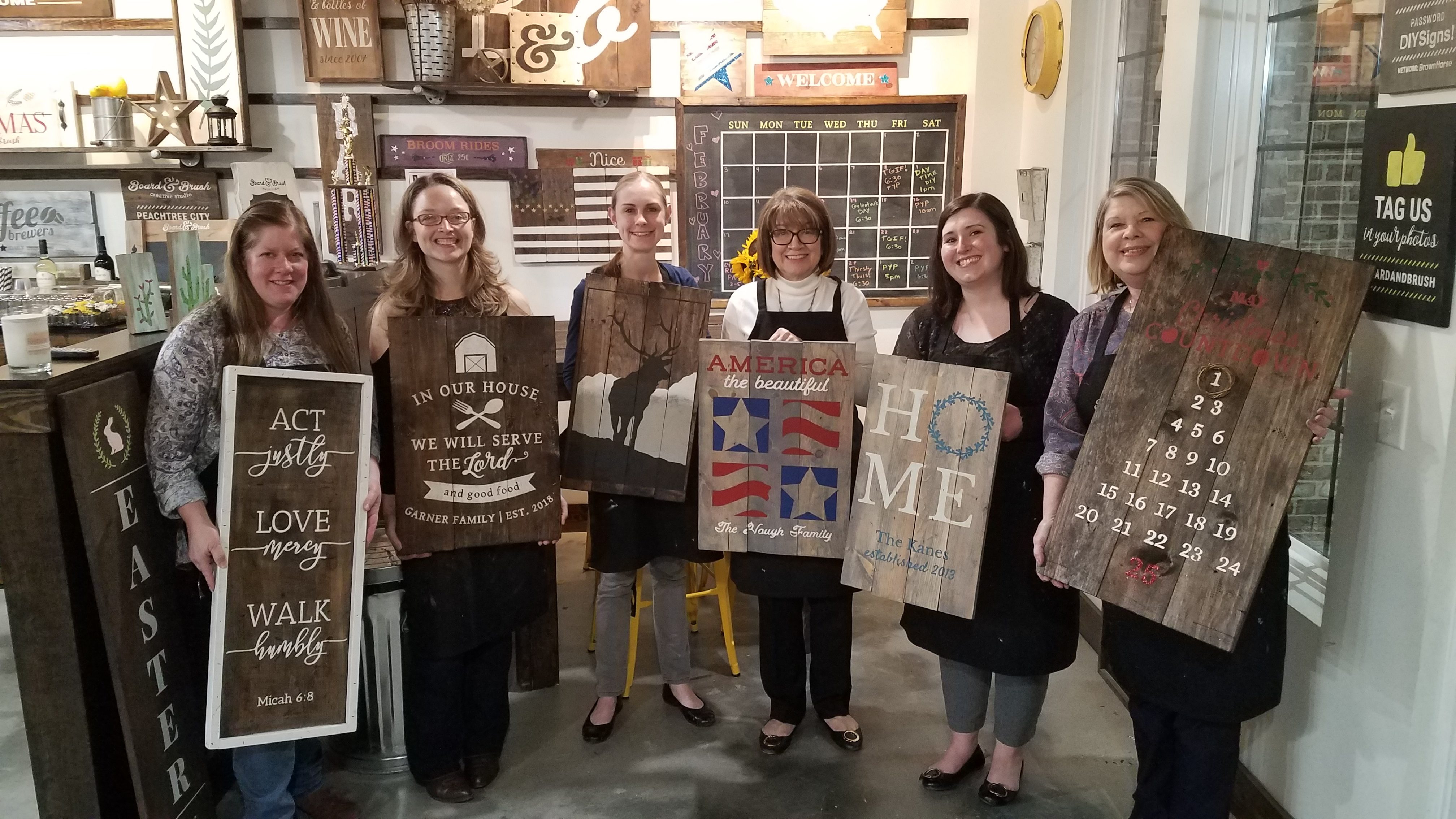 On February 25th six of our ten staff members enjoyed a staff outing thanks to a special designated gift from Save the Storks. We enjoyed dinner at Mellow Mushroom and each got to create a special wall hanging at Board and Brush in PTC.