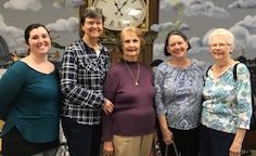 On Tuesday, March 20th, a group from the Goodwin-McCullough WMU of Fayetteville First Baptist Church paid a visit to Fayette PRC and helped organize donations in our clothes closet. We have a long relationship with the Goodwin-McCullough group and appreciate Jeannette Ballard arranging the service project. Amy is pictured with Norma McMurry, Janette Ballard, Bonny Campbell and Brenda Arnett.