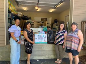 their Lighthouse Program, and on Tuesday, May 14th they brought much needed items for the clothes closet. Pictured from left to right is Katina Johnson from the Fayetteville branch, Tammy Powell manager of Fayetteville branch, Amy Kane (Clothes Closet Coordinator), and Carrie Snow (clothes closet volunteer).