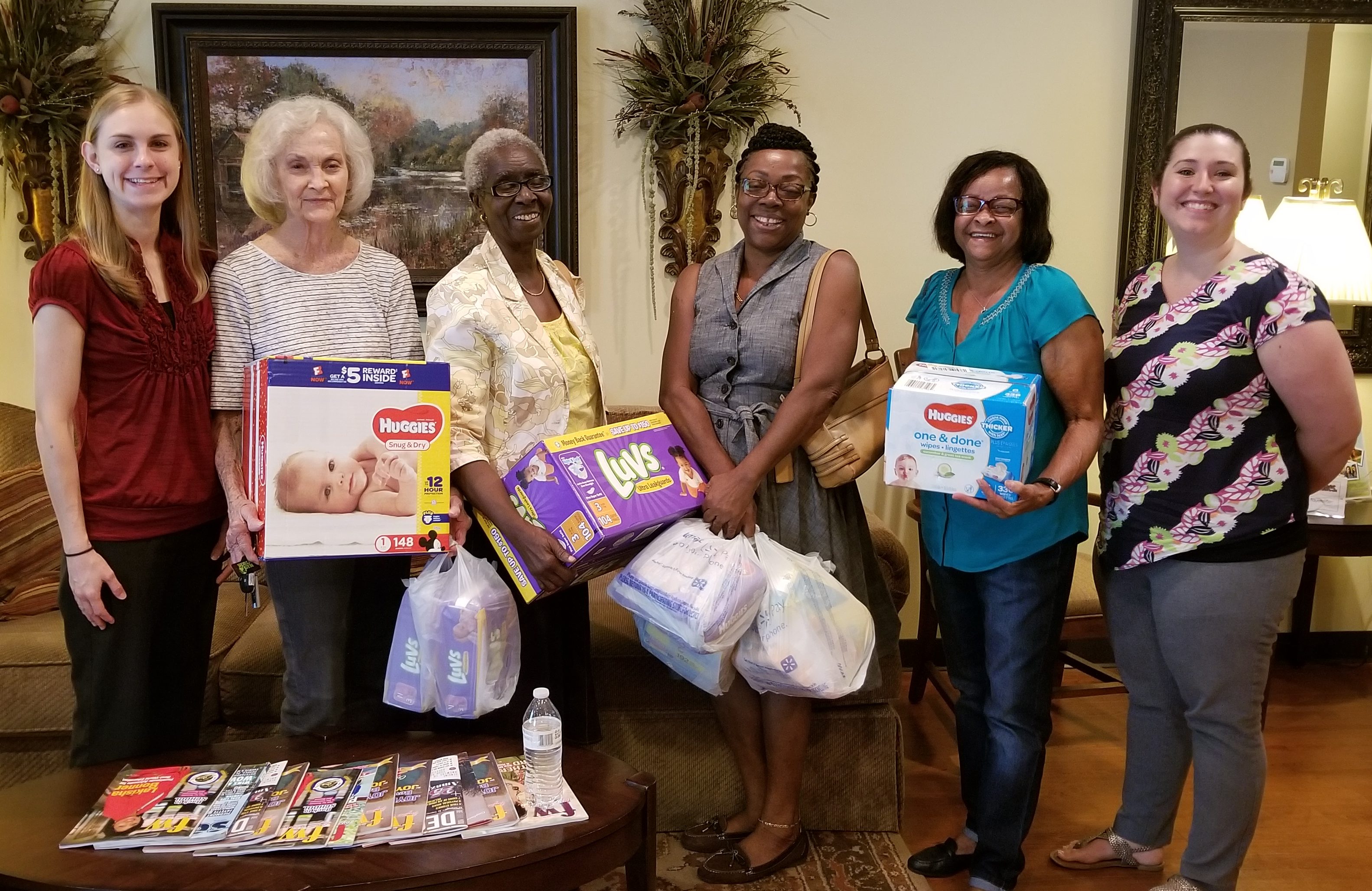 On September 26th several ladies from the Women’s group of First Baptist Church Fairburn visited the Center for a tour and brought some donations. The ladies are pictured with Angela Weeks (left) and Amy Kane (right).