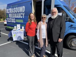 Niki and Luci were at All Saints Anglican Church with “Benjamin” on November 17th . Niki spoke during the service, thanking All Saints for support and describing the services of Fayette PRC, especially how Benjamin will be used to broaden our reach in the community. Niki is shown with Moneen Behlke, church liaison, and The Rev. Don Hutchens.