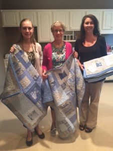 Jean Shealy of the Quilters Guild of the Southern Crescent is shown with staffers, Angela Weeks and Lesa Fulks, as she donates quilts for expectant moms.